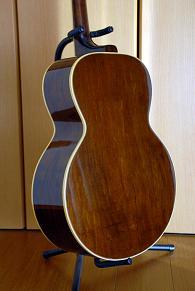 アリス好き 特にアリス時代のべーやん好きの私として、以前より欲しかった一品である。 学生当時購入した「Song Forever」まで収録されている「堀内孝雄楽譜集」、その裏表紙にこのEverlyを持つべーやんの姿が写っており、今まで、MORRISのWJ、本家Gibson J-180 1968Reも手にしてきたが、今ひとつ納得できず、手放してきた。 アリス復活以降、このモデルが店頭に出たのは3回目のはずである。ネット上で見た瞬間、後先考えずmail送信をしてしまい、翌日正式に購入意思表明。 「Everly Brothers」modelのオリジナルは1962〜1972年の間488本(?)と生産台数が少なく、市場に出てきても結構なお値段なのだが、 今回のナチュラルトップ・スモールピックガード(それでも大型だが)の1968年以降の仕様は、アリスファン以外には不人気なのか、前期のラージピックガード仕様と比べると相場がお安い。 「やっちゃった・・・」という思いと「やっと・・・」との思いの交錯があったとはいえ、数日後、手元に届いた。