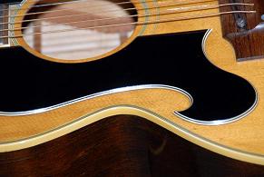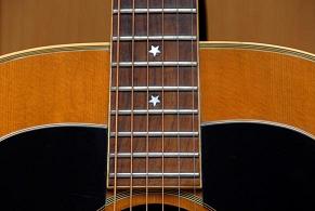 ナット幅40mmは、さすがに細い!J-45では一時期38mm仕様もあると聞いていたが、そこまではないにしても、細い! ヘッド及び指板のインレイも☆、15f☆の向きも逆向きなのはポールマッカートニーと同じだろうか?しかし、17fの☆も逆向きである。